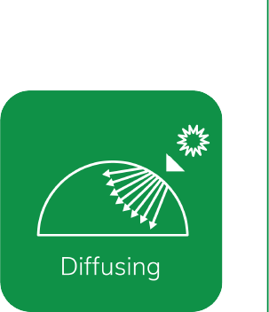 Diffusion reduces shadows, ensures a better spread of the light in the greenhouse so that even the lower parts of the plant are reached, avoids burns and offers a controlled cooling effect. Diffusing films are rather indicated for high crops.
